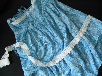This was how my tiny working table looked while I attached the last lace......the dress was like a monster, swallowing my whole table!